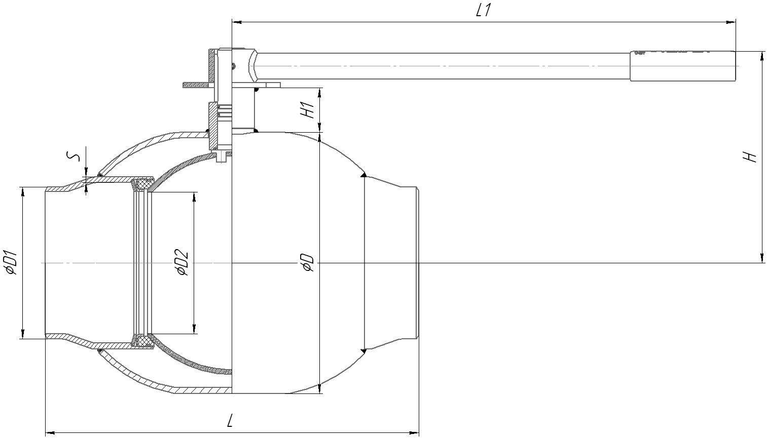 | Артикул | DN | PN | L | L1 | H | H1 | D | D1 | D2 | S | Вес | |