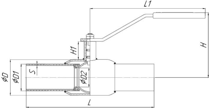 | Артикул | DN | PN | L | L1 | H | H1 | D | D1 | D2 | S | Вес | |