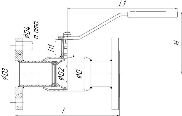 | Артикул | DN | PN | L | L1 | H | H1 | D | D1 | D2 | D3 | N OF HOLES | Вес | |